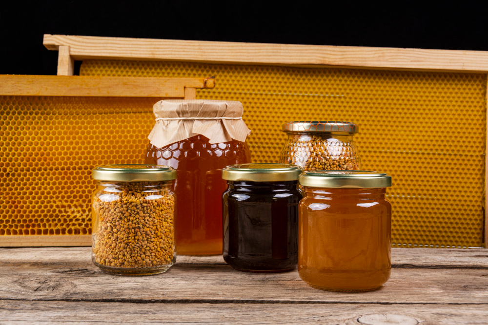 Mel de abelhas criadas em nossa região. 100% puro, sem adição de açúcar ou conservantes